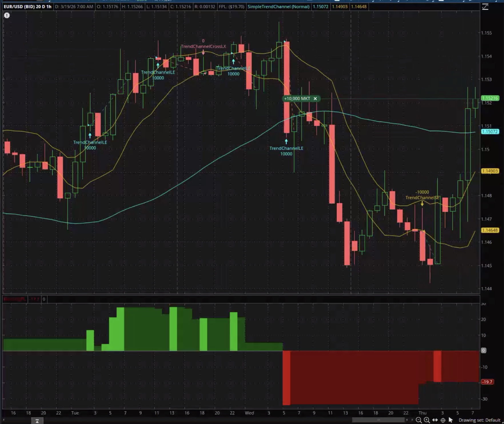 (**Advanced Topic: you can adjust the settings so the chart strategy generates additional entry signals even while it is still in a position).